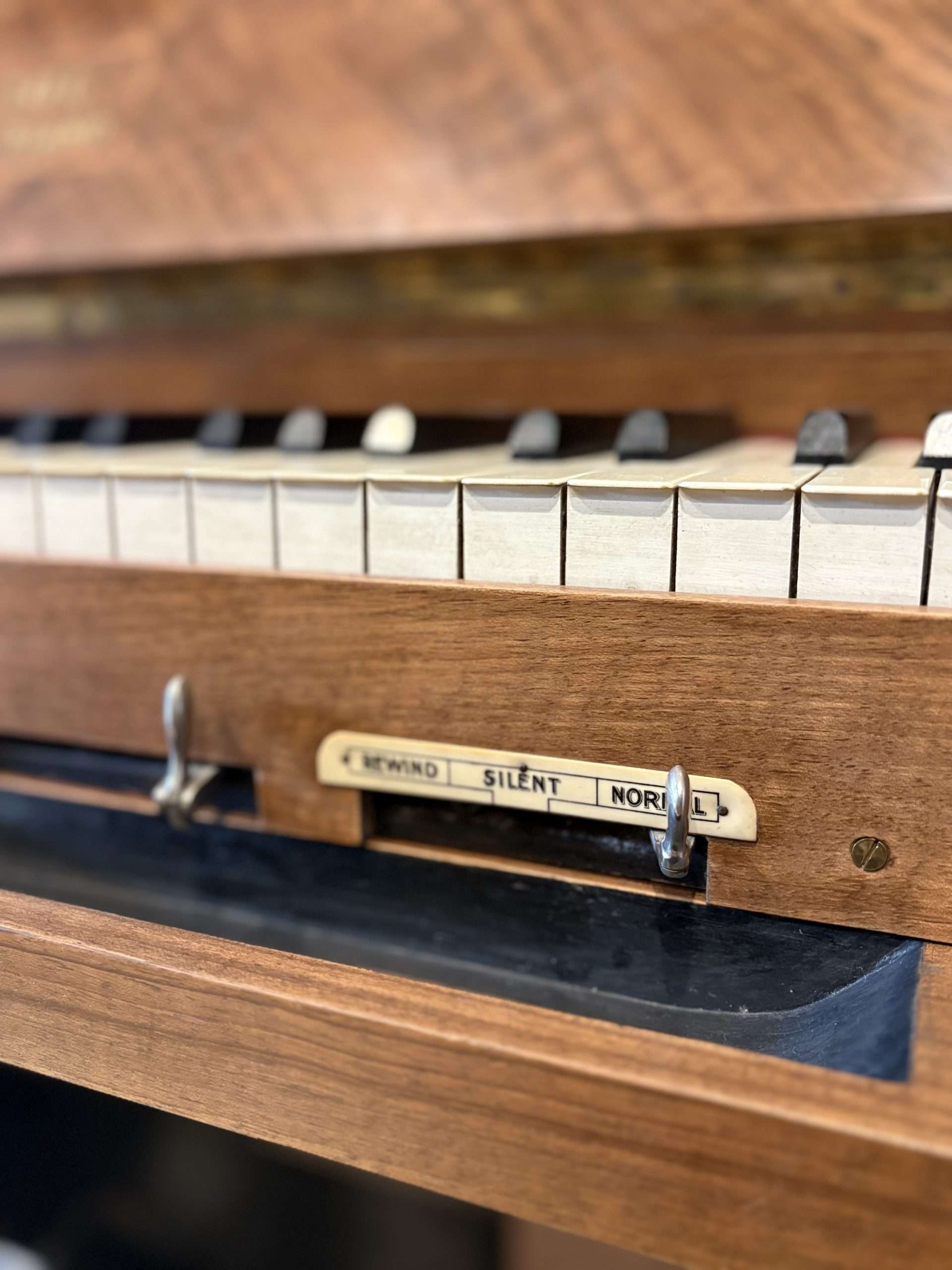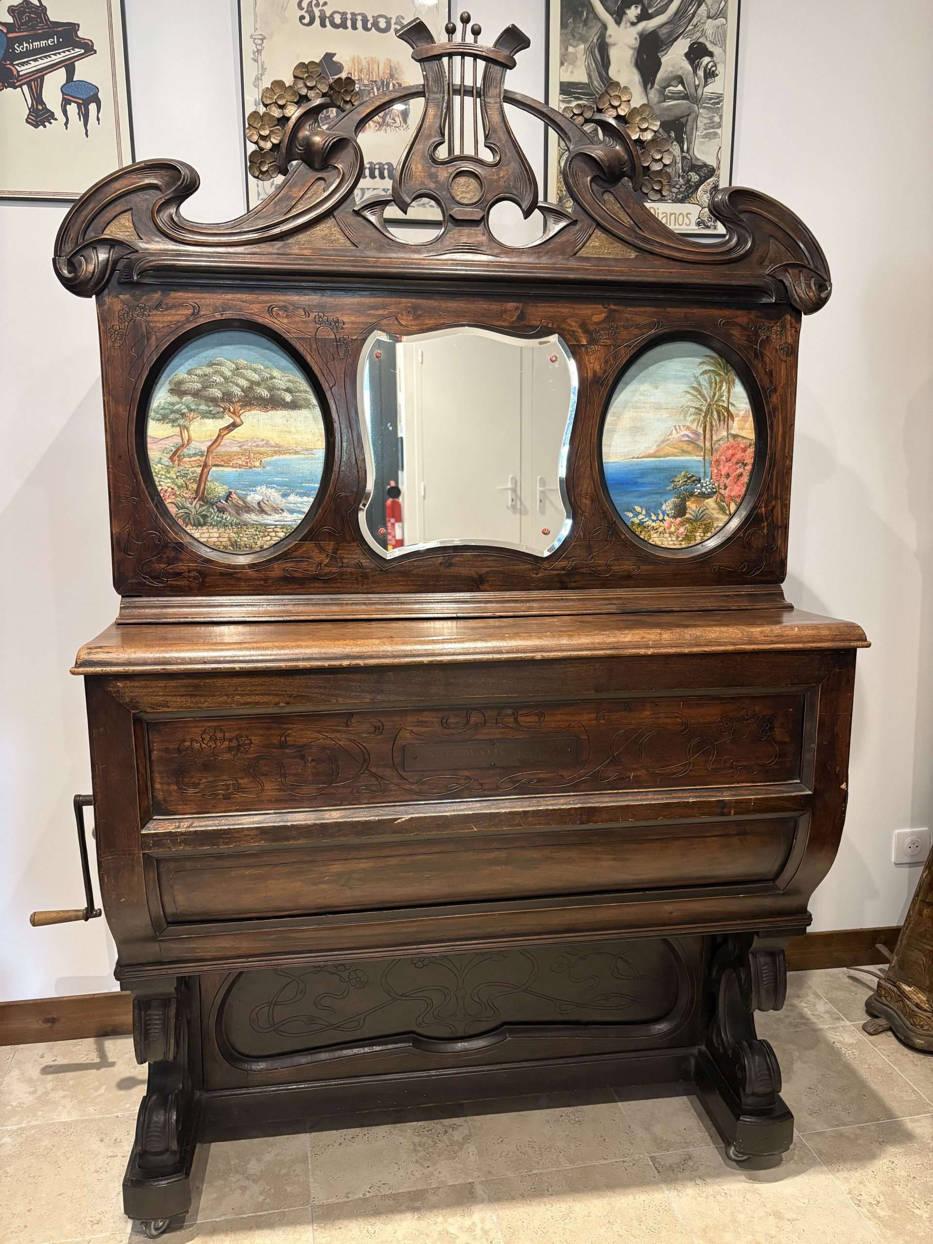 Notre piano pneumatique (pianola aeoriol) date des années 20. Il a été restauré dans notre atelier et est en parfait état de fonctionnement.