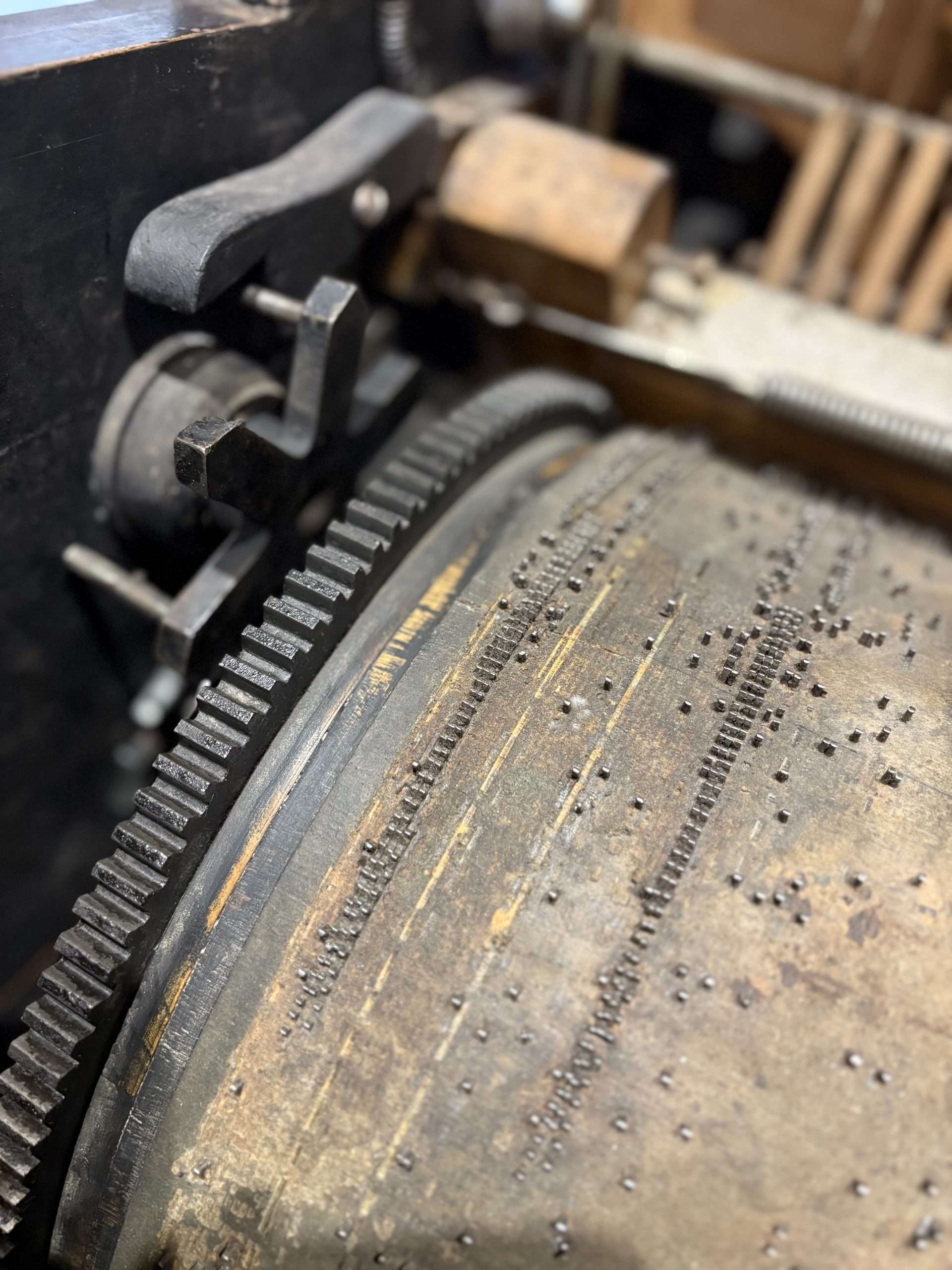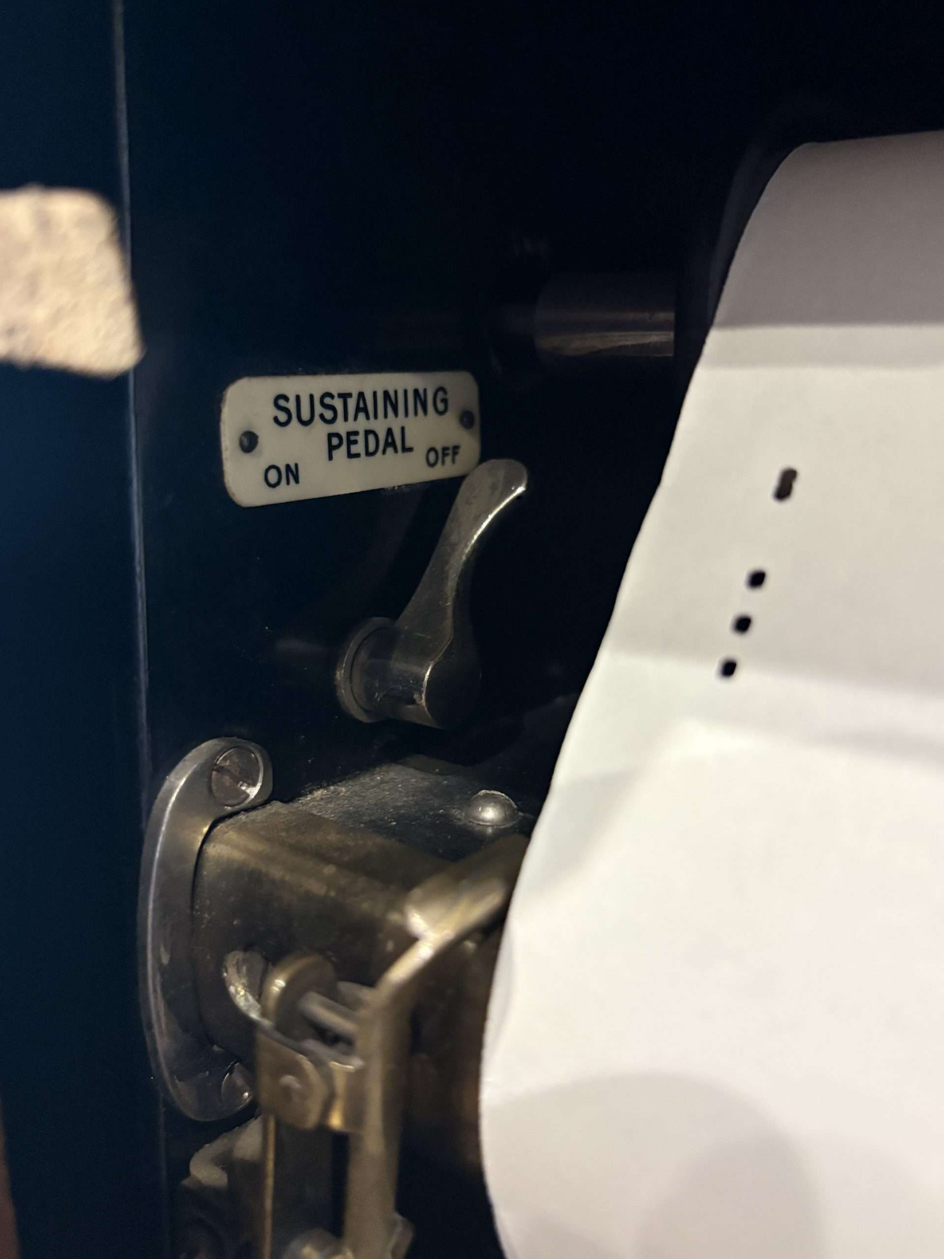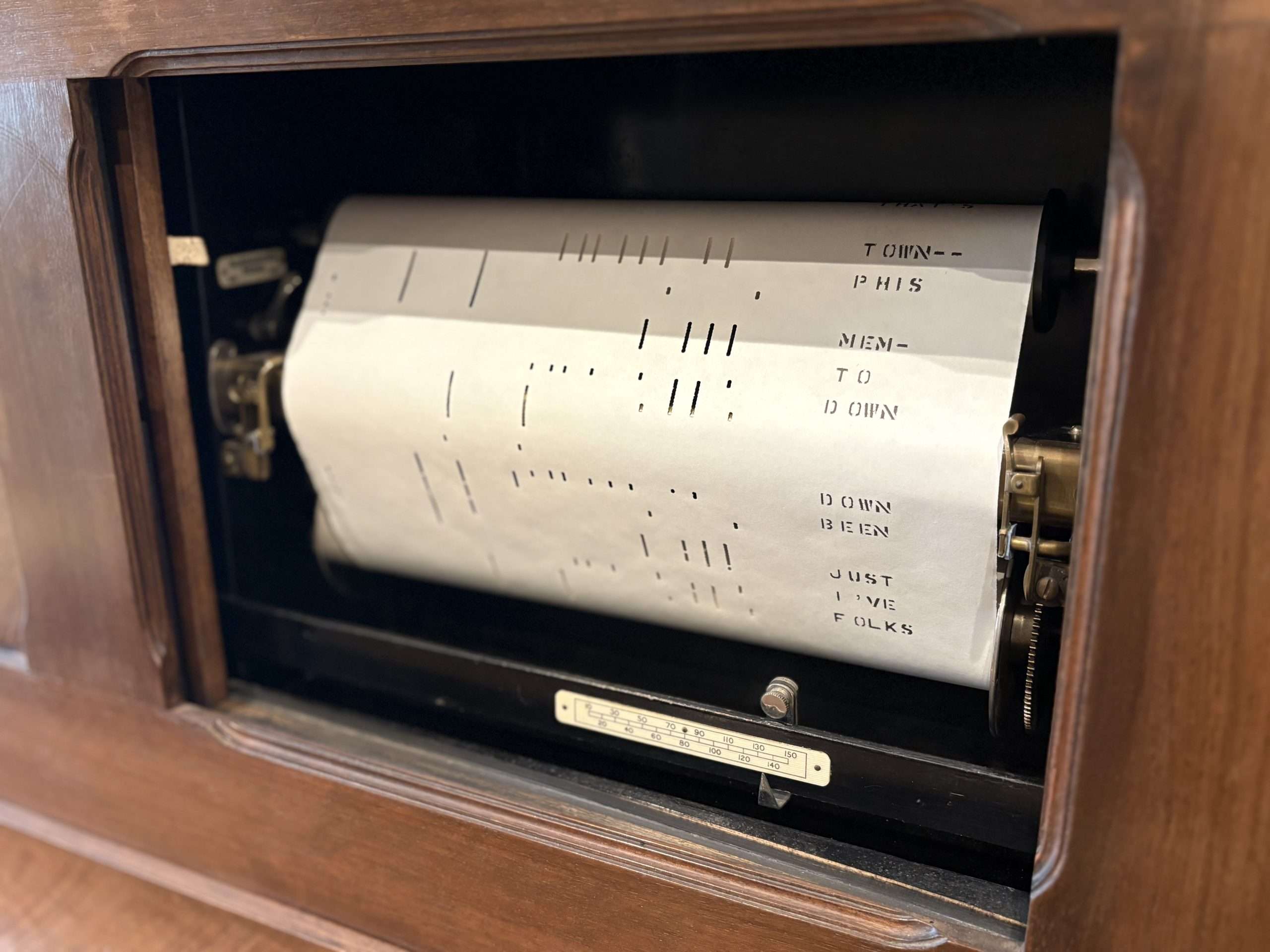 Le piano pneumatique fonctionne avec un rouleau de papier perforé qui défile à l’intérieur de l’instrument.