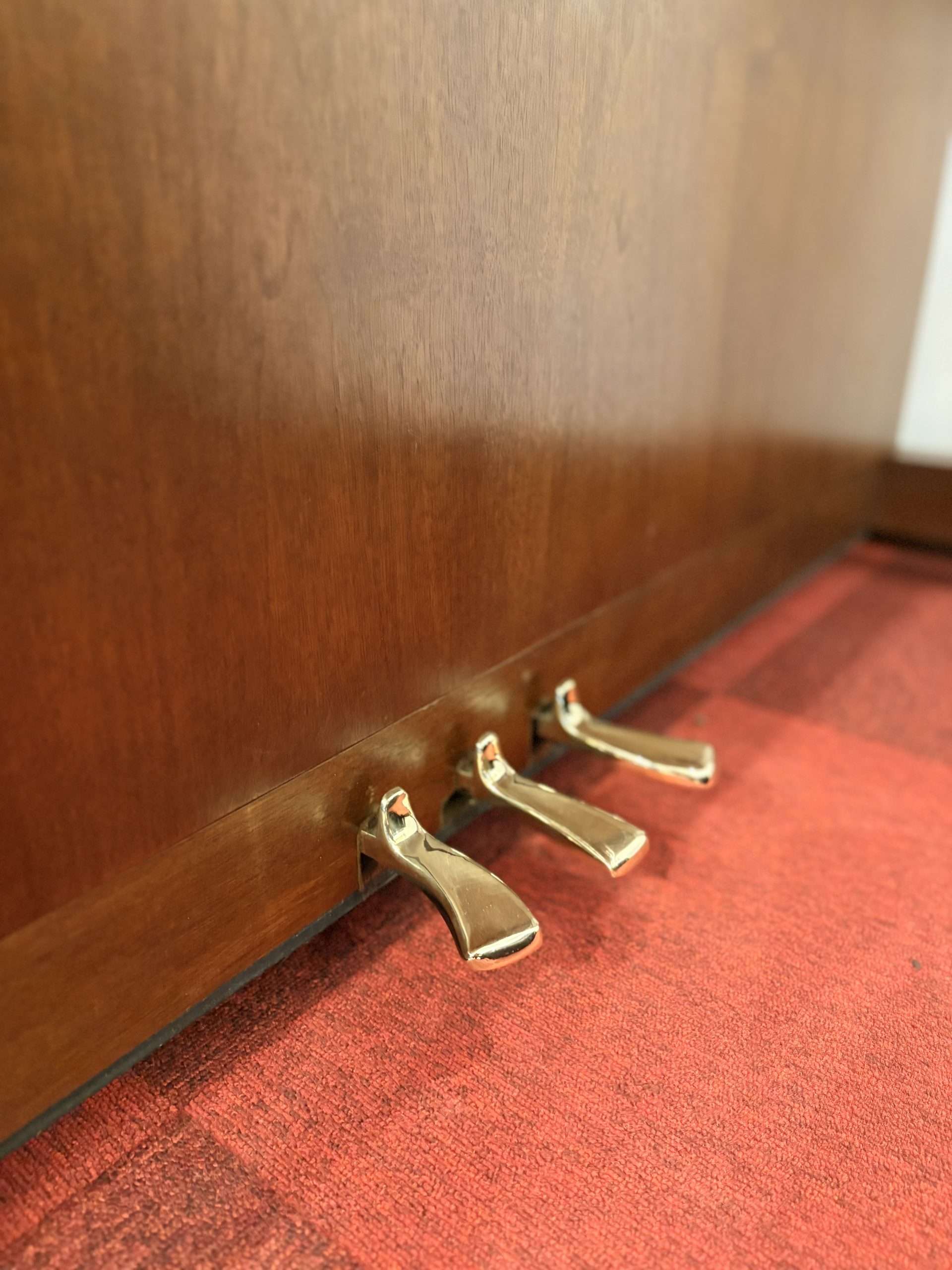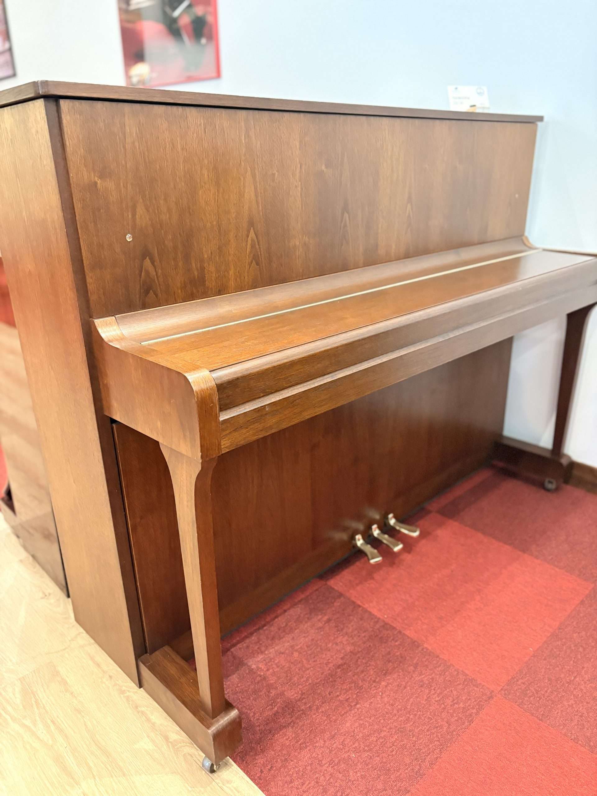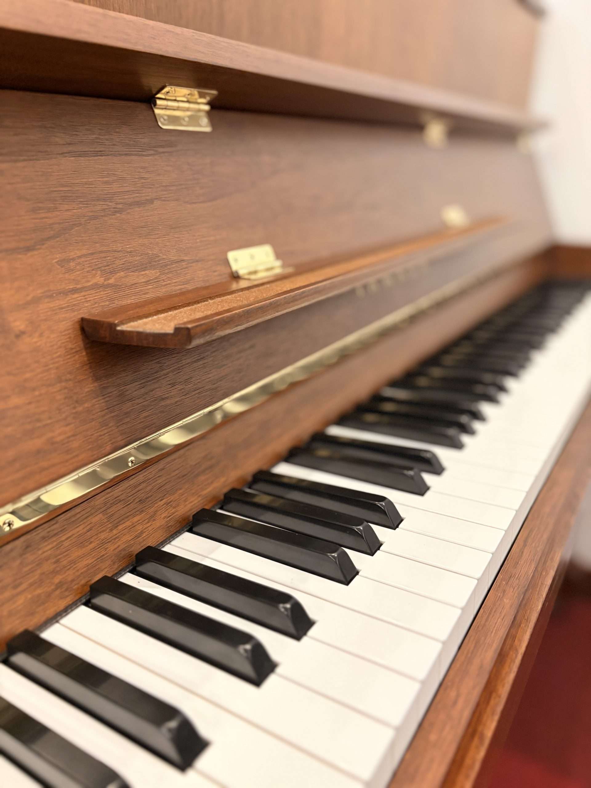 Ce piano a tout d’un grand, même esthétiquement, puisqu’il a les consoles et les roulettes.